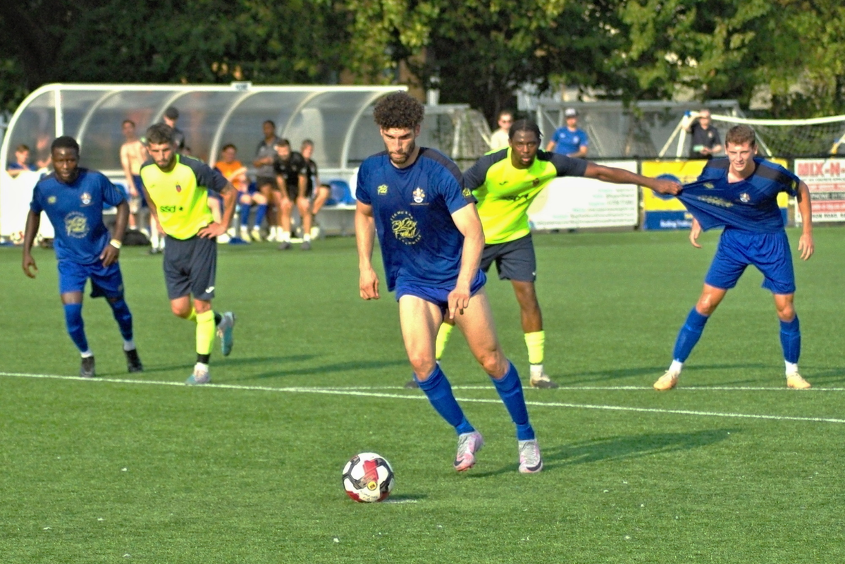 Romford and FC Clacton have met twice already this season with Romford coming out on top in both Essex Senior League encounters. Back in September, Romford ran out 4-1 winners at Mayesbrook Park with Hassan Nalbant scoring three, including the penalty he can be seen taking below. George Cox got the other one.
