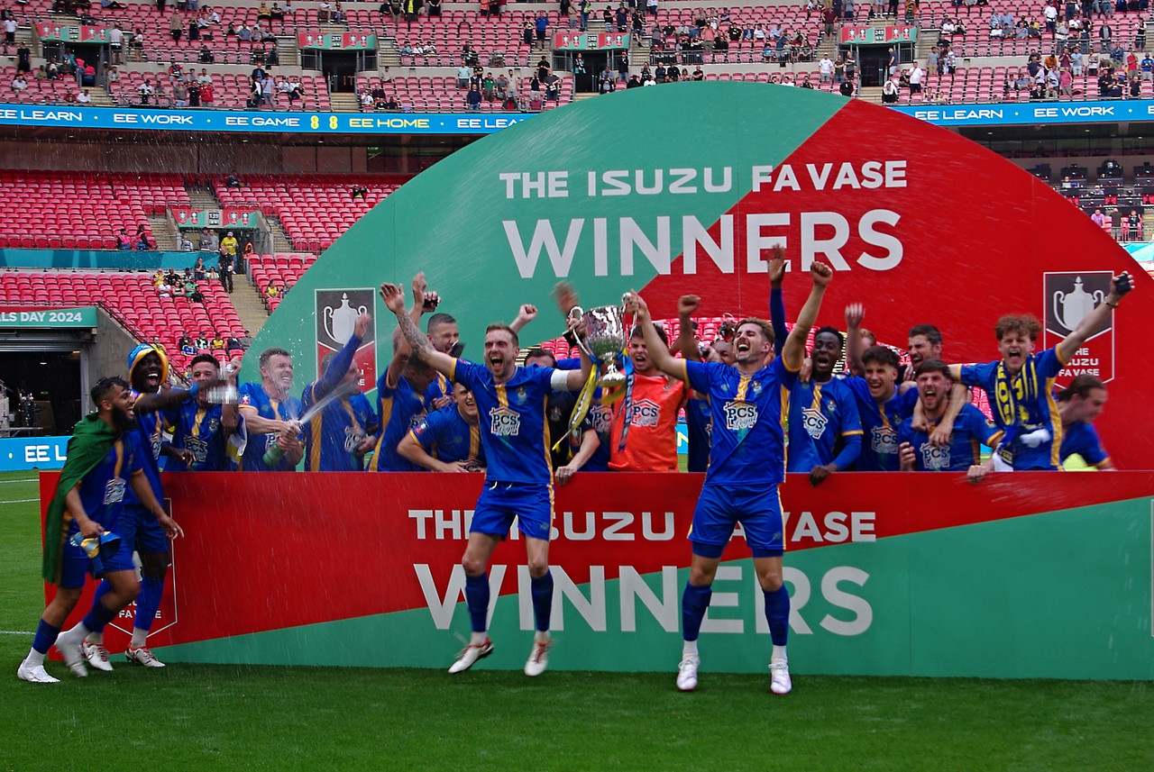 The FA Vase will be on display at the games at Harwich & Parkeston, Halstead Town, and Hullbridge Sports on Saturday, but sadly not at Mayesbrook Park, so here’s a reminder of that glorious day in May 2024 when Boro got their hands on it for real!