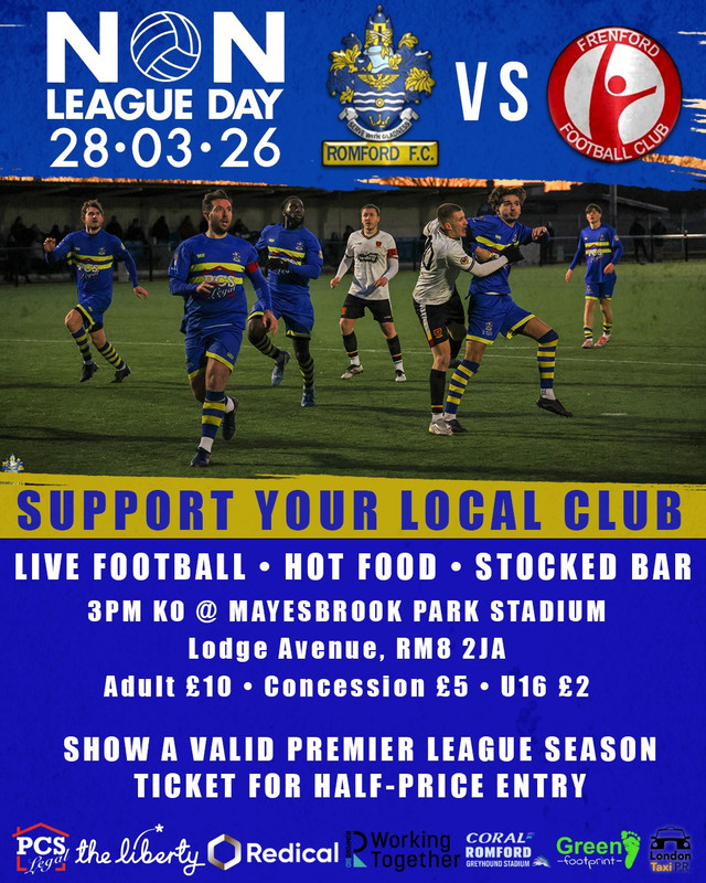 Romford will face Frenford on this year’s Non-League Day and the club would love to see as many people as possible over at Mayesbrook Park for this important Essex Senior League game. Whether you’re a Boro fan who hasn’t been for a while, a supporter of a Premier League or Football League club who are not playing, or just curious about non-League football, why not come on over, and maybe bring a friend!